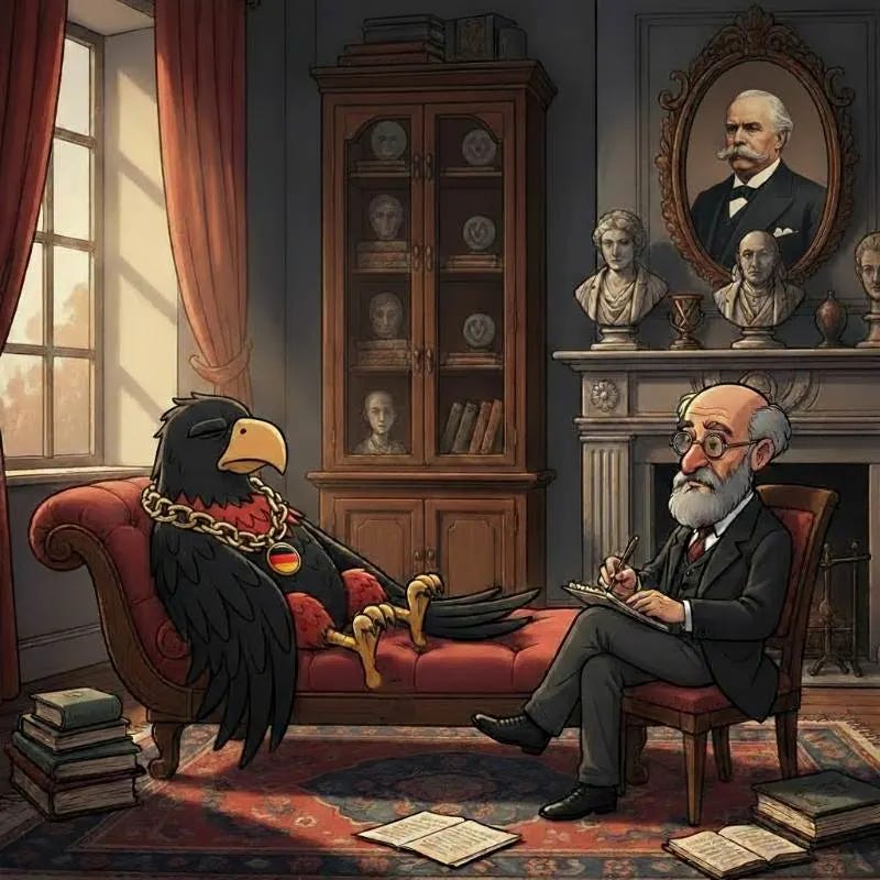 Bergner applies clinical criteria typically used for individual burnout to the entire German nation. He views it as a patient suffering from collective exhaustion. Rooted in unresolved historical trauma—it’s Germany, after all: traumatising and traumatised. Exacerbated by the contemporary crisis landscape. Using his clinical lens, Bergner sees Germany falling perfectly into the main symptoms of burnout.