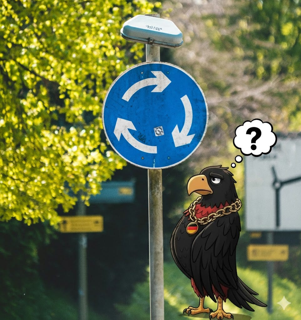 That’s when I understood. This is the story. Germany today is like a driver stuck in a roundabout. Two laps, three, five. Unable to choose an exit. Is the GPS missing? Or perhaps the petrol too?